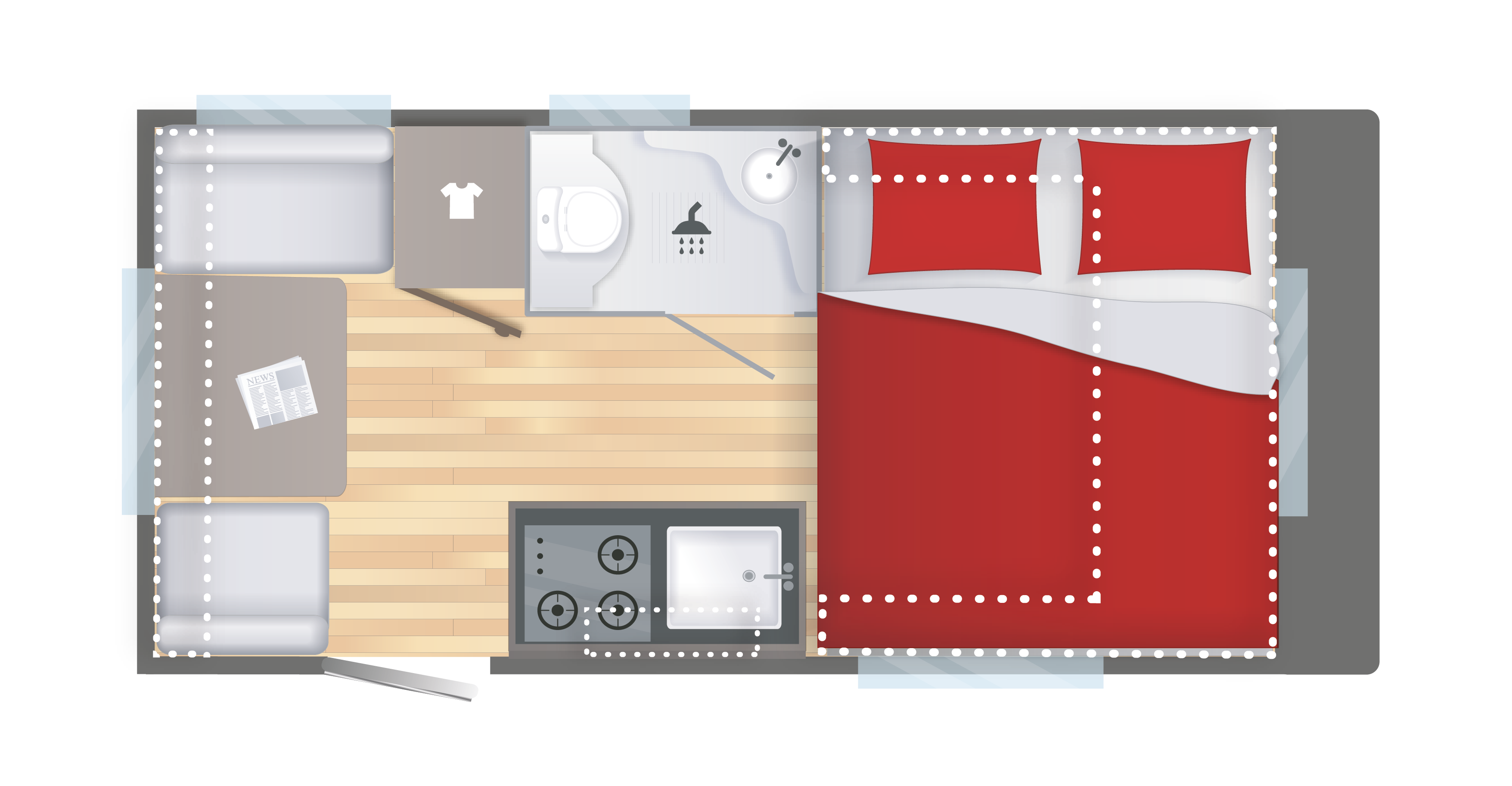 IMPLANTATION LIT AV TRANSVERSAL 2 PLACES SUR COFFRE