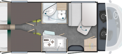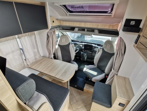Aussi compact et maniable qu'un van, le profilé S217 apporte plus d’espace intérieur et une meilleure isolation. Il est doté de nombreux rangements, d’une salle d’eau modulable et de lits jumeaux transformables en lit double « king size ».