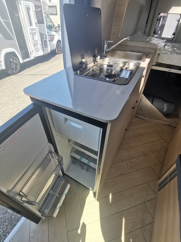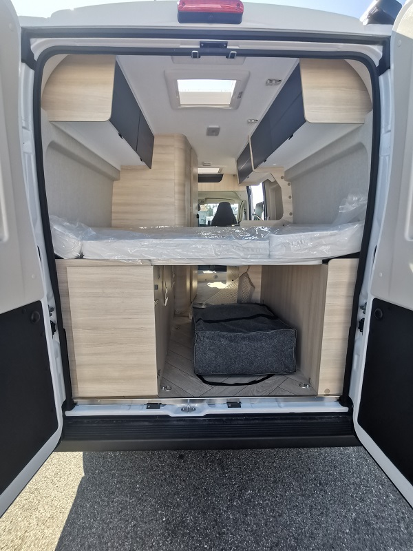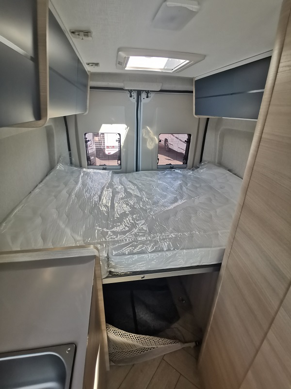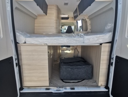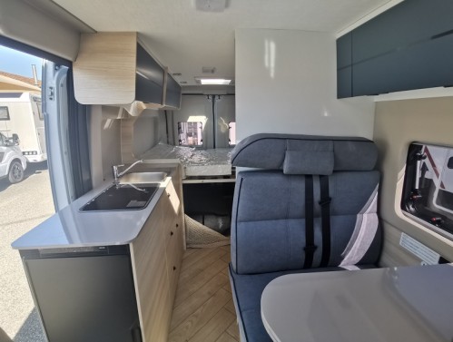 C’est le grand frère du V114S, décliné ici en 5.99 mètres offrant ainsi plus d’espace et la possibilité d’un couchage d’appoint pour un enfant. Astucieuse salle de bains (avec douche, lavabo et WC) et lit arrière de grande dimension, relevable si besoin d’espace. Assurément l’un des plans les plus éprouvés (et appréciés) sur le marché du fourgon aménagé.