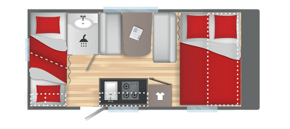 Avec ses deux lits superposés, son grand lit fixe à l’avant et une dinette convertible, la 470PE offre une vraie solution familiale. Bien agencée, bien équipée, elle permet de voyager à plusieurs tout en gardant un espace de vie agréable et pratique au quotidien.