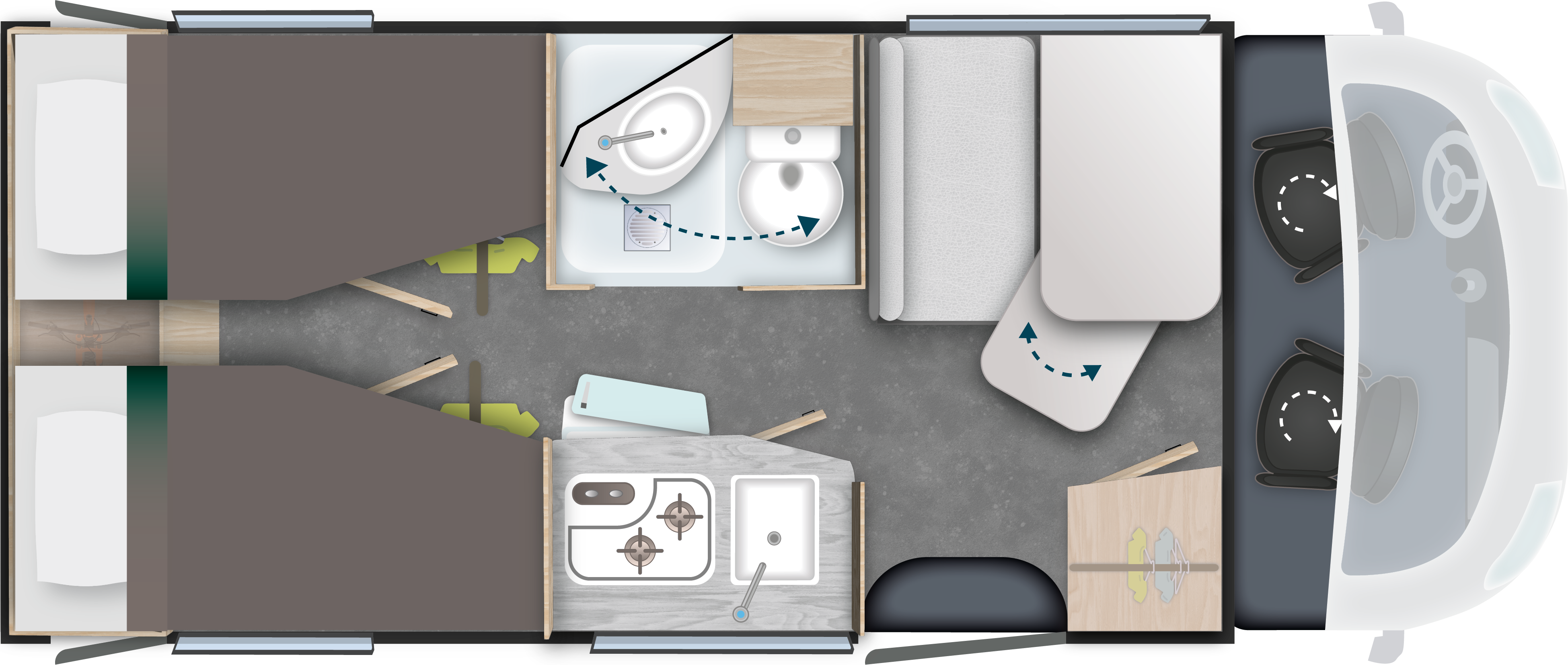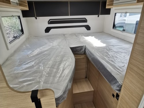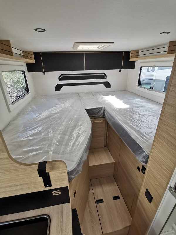 Aussi compact et maniable qu'un van, le profilé S217 apporte plus d’espace intérieur et une meilleure isolation. Il est doté de nombreux rangements, d’une salle d’eau modulable et de lits jumeaux transformables en lit double « king size ».